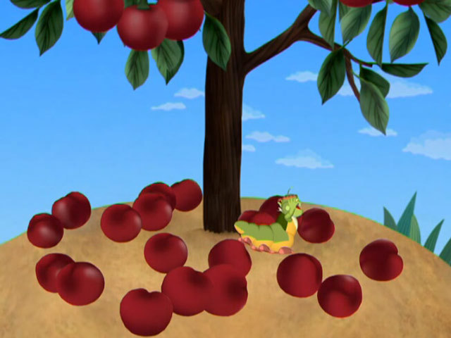 Вупсень не хочет никому показывать упавшую с дерева вишню. Но ягодку съедает личинка муравья...
